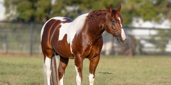2018 APHA Stud METALLIC CHROME, is the only tobiano paint son of the great METALLIC CAT. He is an Open Level NRCHA money earner his Futurity year. We plan on passing on this modern cowhorse paint pedigree in 2025 Stud Fee $1250